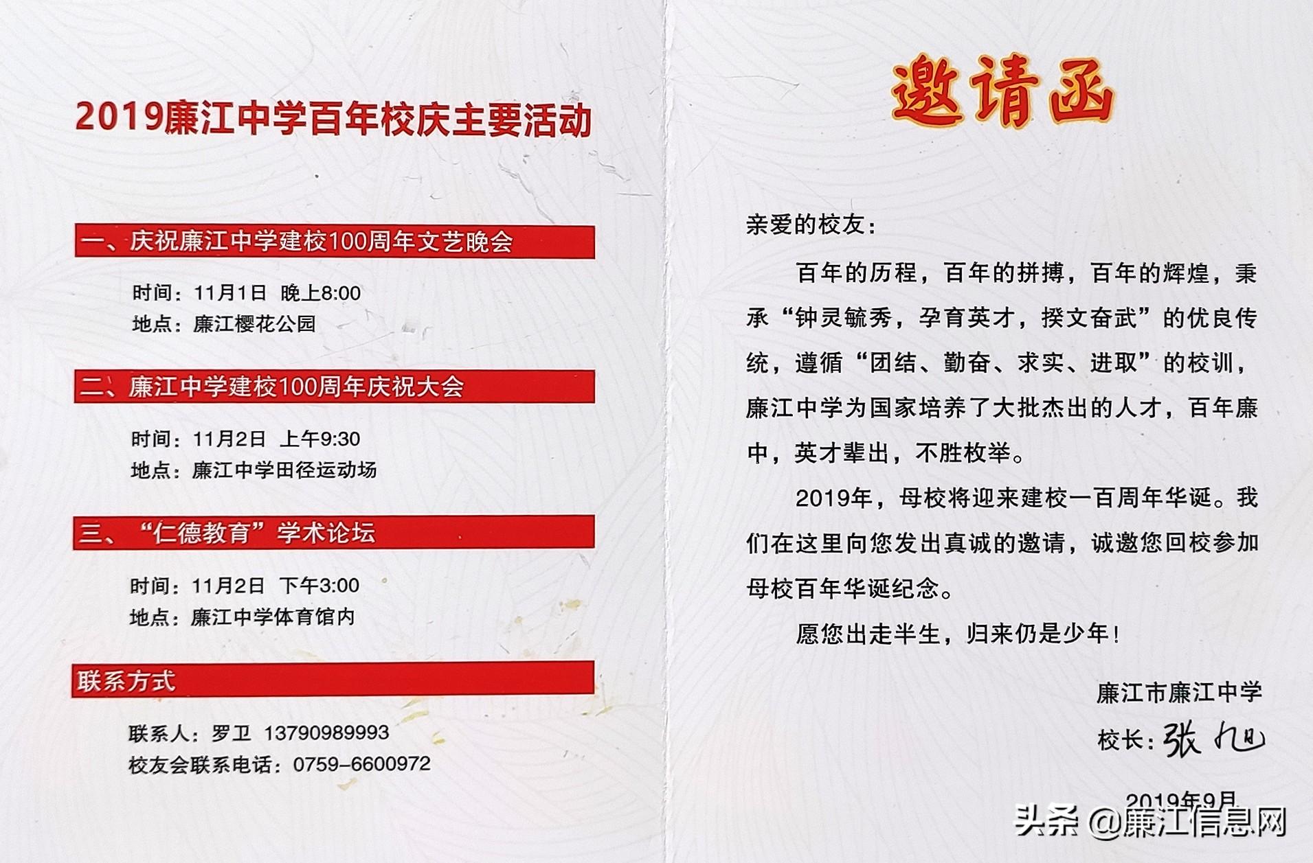 张旭校长代表学校,亲手郑重地向各届校友代表或召集人发出了校庆邀请函,热盛邀请广大廉江中学校友,11月2日回母校参加百年华诞庆典活动。