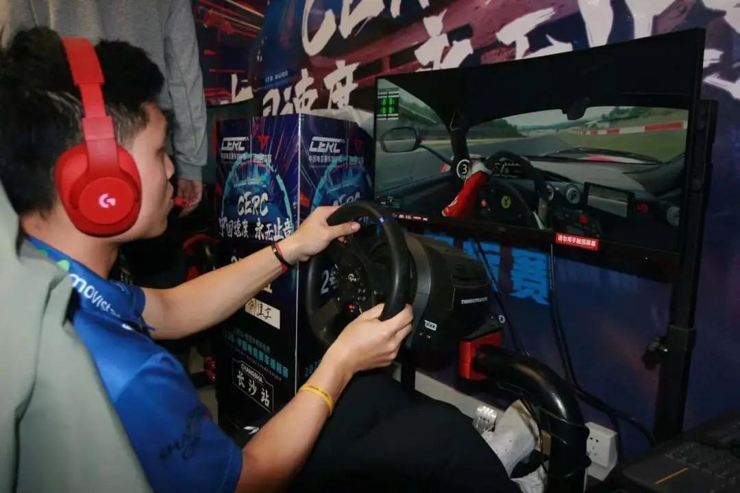 刘津京在学校模拟赛车电竞实验室参加中国电竞赛车锦标赛