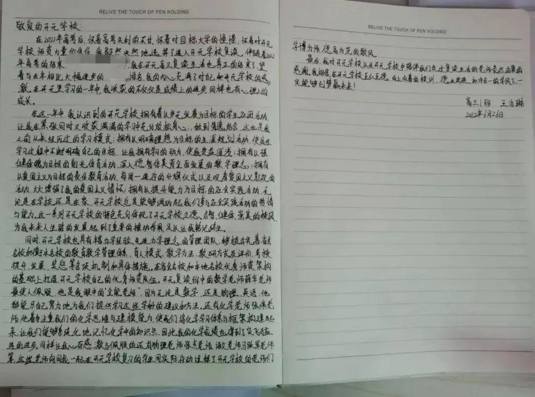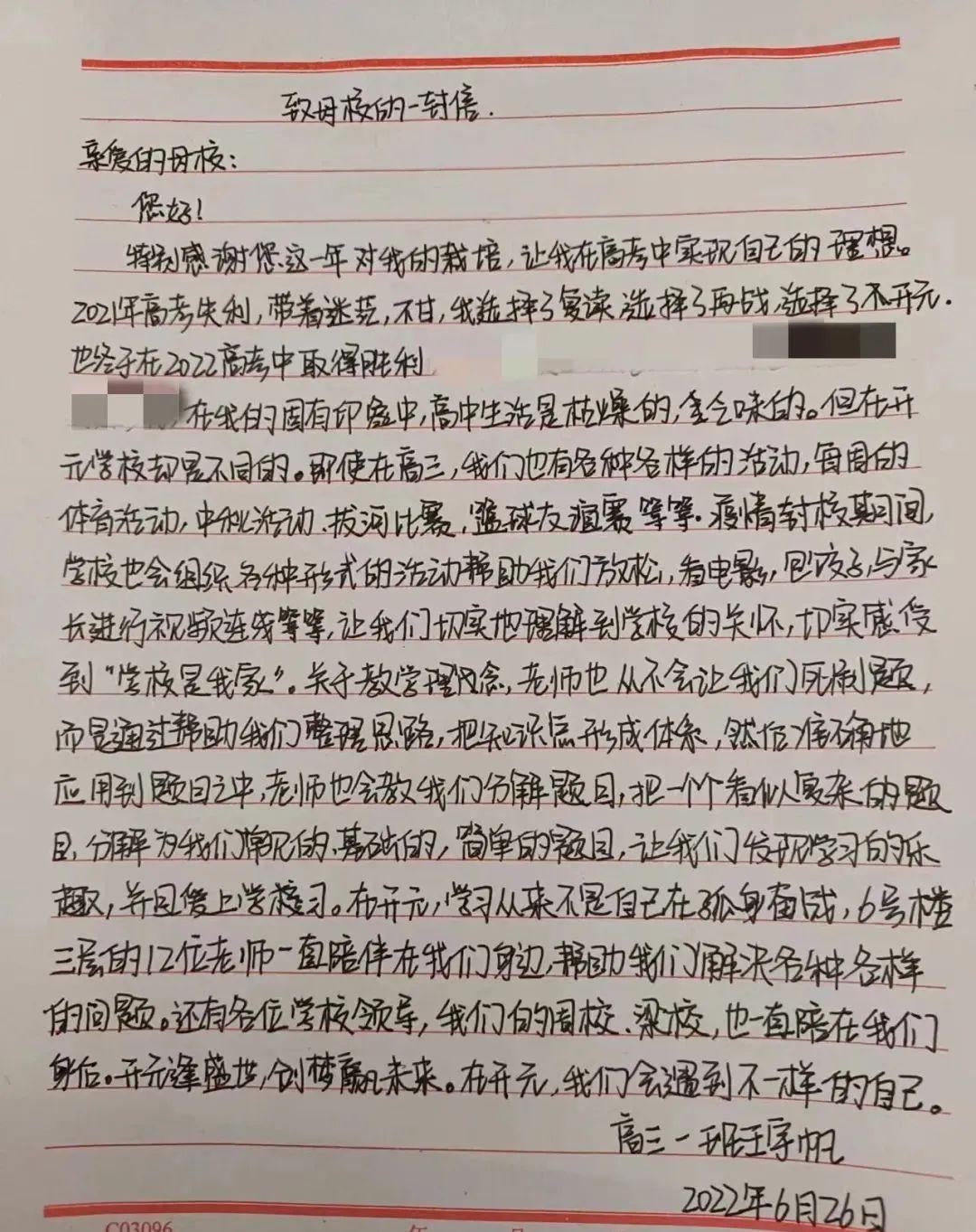 高三毕业生又发来了视频和感谢信!他们说:复读来到开元,是非常不后悔的选择。