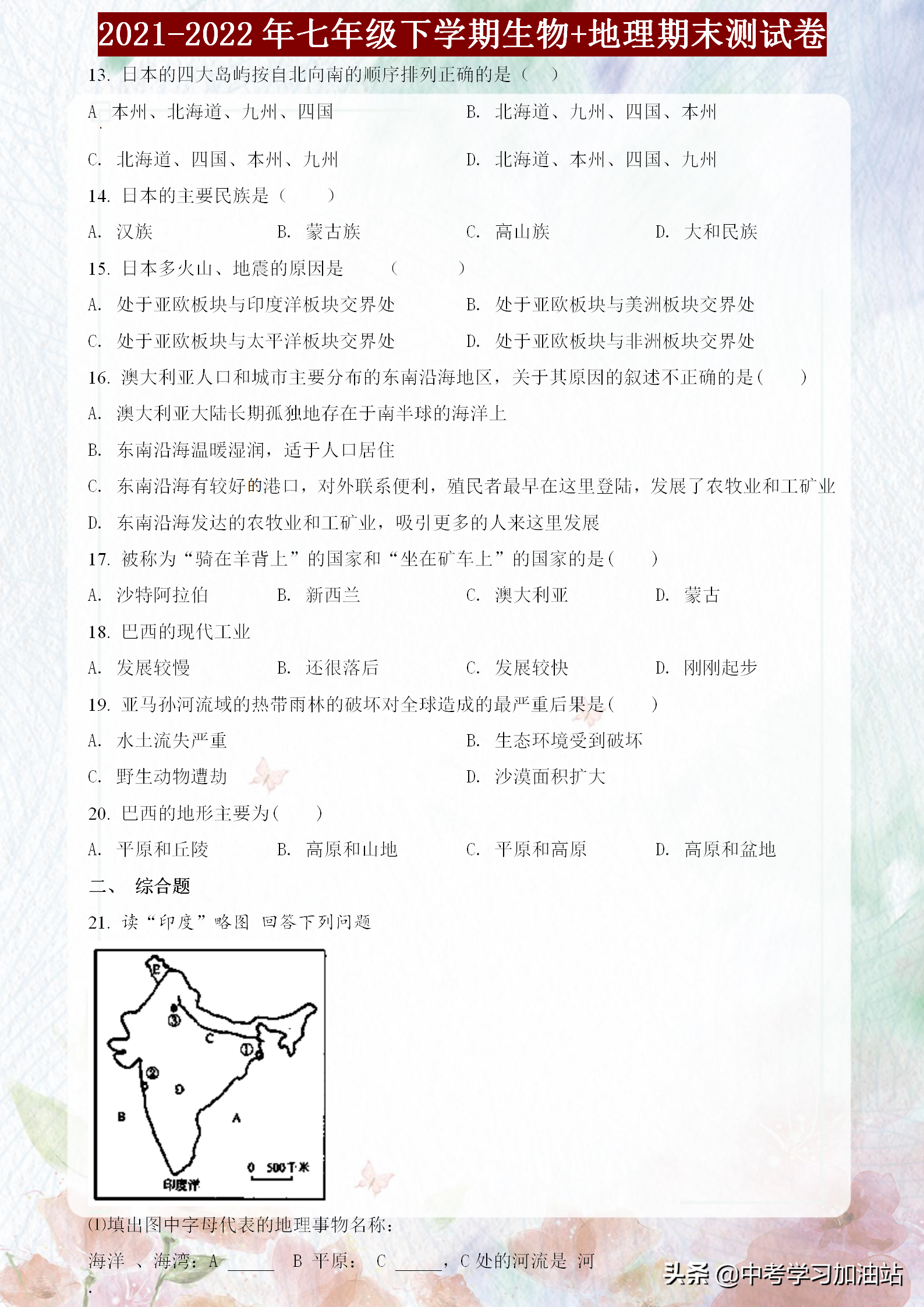 版权声明:我们致力于保护作者版权,注重分享,被刊用文章【2017七年级下册期末考试卷答案(2021)】因无法核实真实出处,未能及时与作者取得联系,或有版权异议的,请联系管理员,我们会立即处理! 部分文章是来自自研大数据AI进行生成,内容摘自(百度百科,百度知道,头条百科,中国民法典,刑法,牛津词典,新华词典,汉语词典,国家院校,科普平台)等数据,内容仅供学习参考,不准确地方联系删除处理!;
