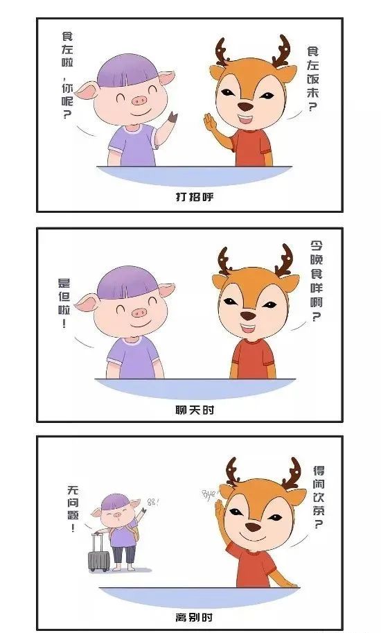 见面打招呼:食左饭未啊?