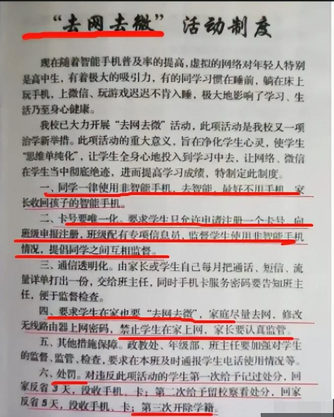 也就是说当地的教育部门没觉得有什么不妥,根据对这个学校的了解,该校正在举行“去网去微”的活动,让学生尽量不去使用手机,如果想要,联系家长简单一些,可以使用非智能手机。学生在家也不能玩手机,一旦被发现就会被处分,累计三次会被开除学籍。