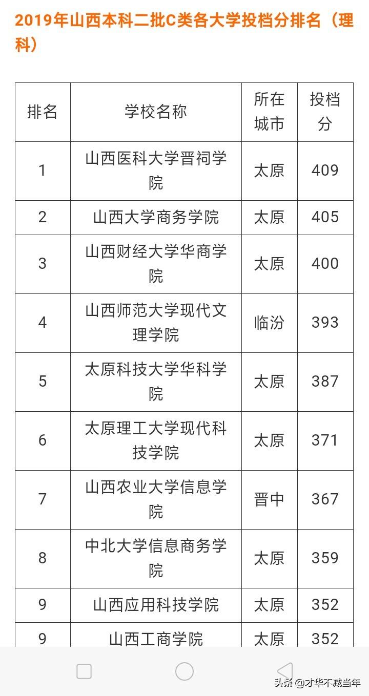 (山西2019年独立学院文理科投档分截图)