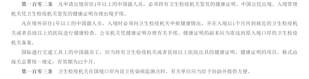 根据《中华人民共和国国境卫生检疫法实施细则》第102条规定来看,凡申请出境居住一年以上的中国公民,必须要持有卫生检疫机关签发的健康证明。也就是说,中国公民出境入境,必须要有卫生检疫机关签发的健康证明,以此办理出境手续。