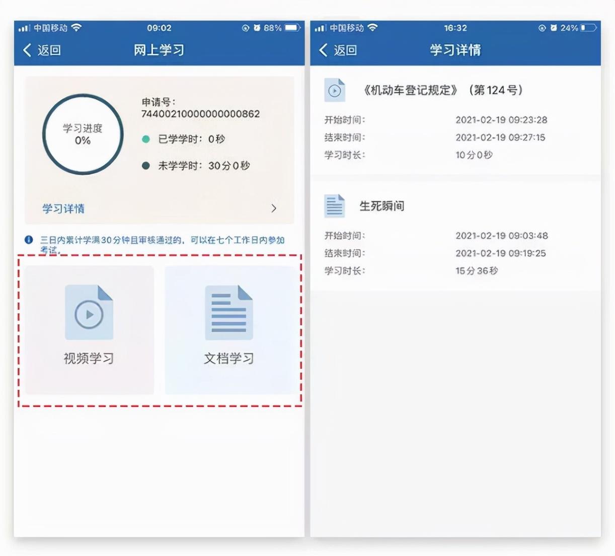 5、点击【视频学习】或【文档学习】进行学习,顶部区域实时更新学习进度,点击【学习详情】,可查看当前所有学习记录。