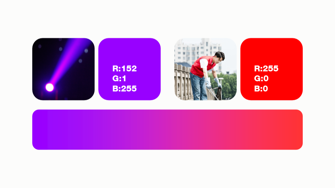 所以呢,在配色上,我想体现出活力和公益的感觉,就选了紫色和红色的搭配: