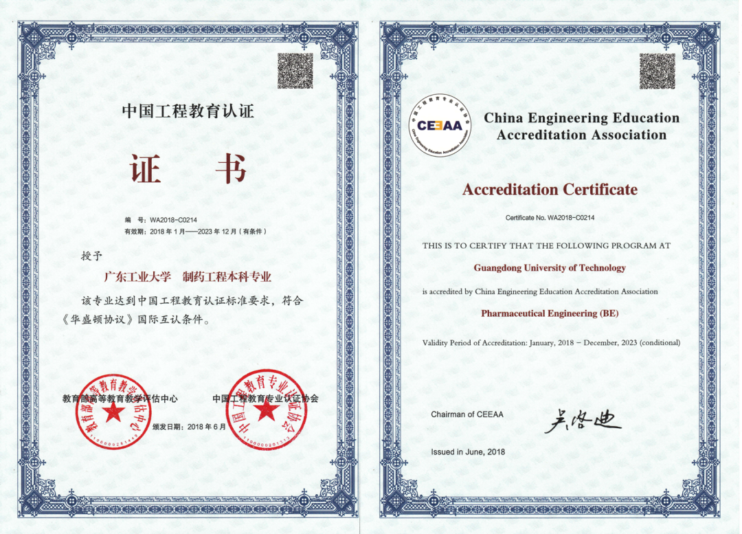制药工程专业认证证书