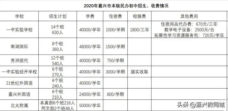 嘉兴外国语:招收6个班,210人,学费24000一学年。