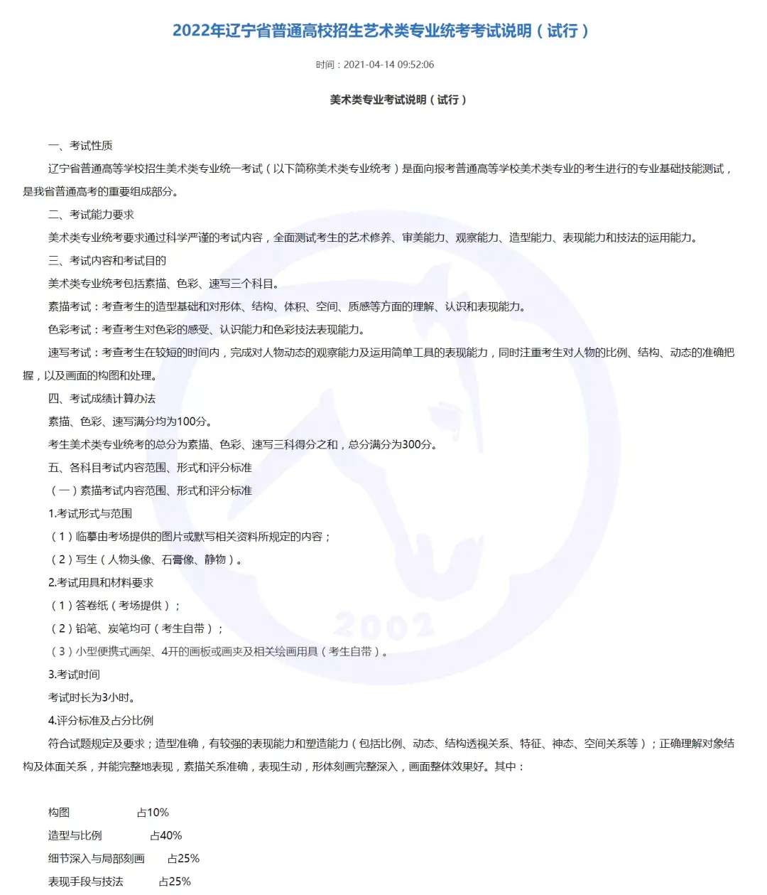 辽宁省已发布2022年美术类、音乐舞蹈类、戏剧与影视学类考试说明
