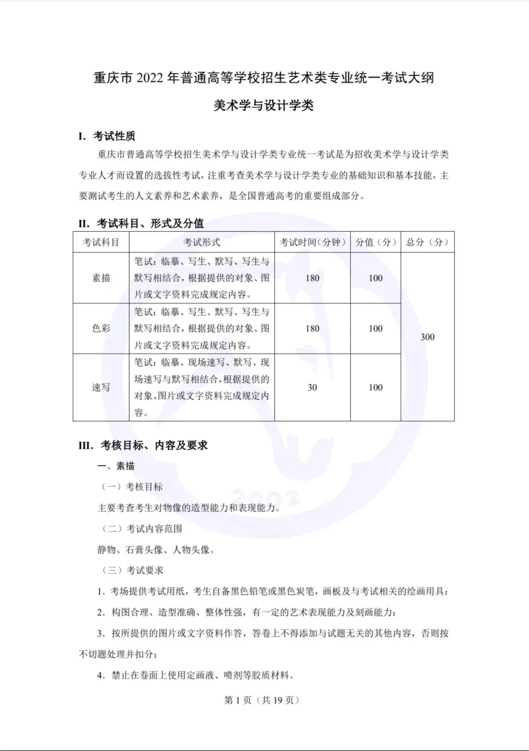 重庆市已发布2022年美术学与设计学类、音乐类、舞蹈类、表演专业、播音与主持艺术专业考试大纲。