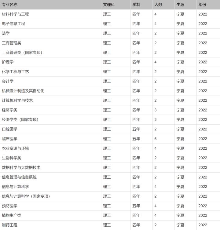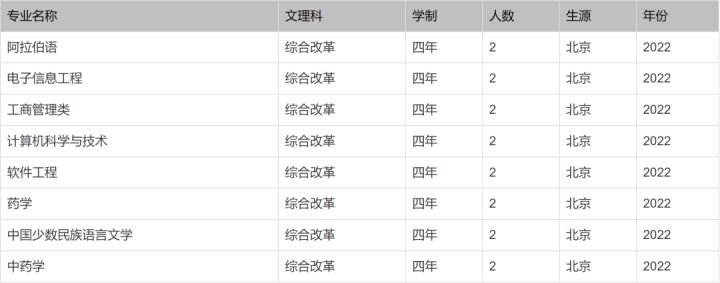 表六:北京印刷学院2022年非高考改革省份招生计划