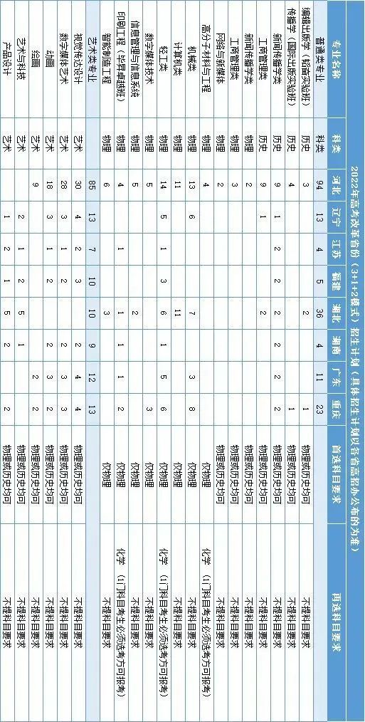 表五:2022年高考改革省份(3+1+2模式)招生计划