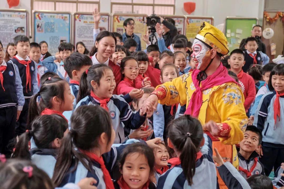 伴着绵绵春雨,今天,广州市荔湾区东沙小学的学子们迎来了新春开学典礼。在这个特殊的日子里,孩子们除了见到思念已久的老师和同学,还见到了一群特殊的嘉宾,他们就是广东粤剧院的粤剧大师和演员们。