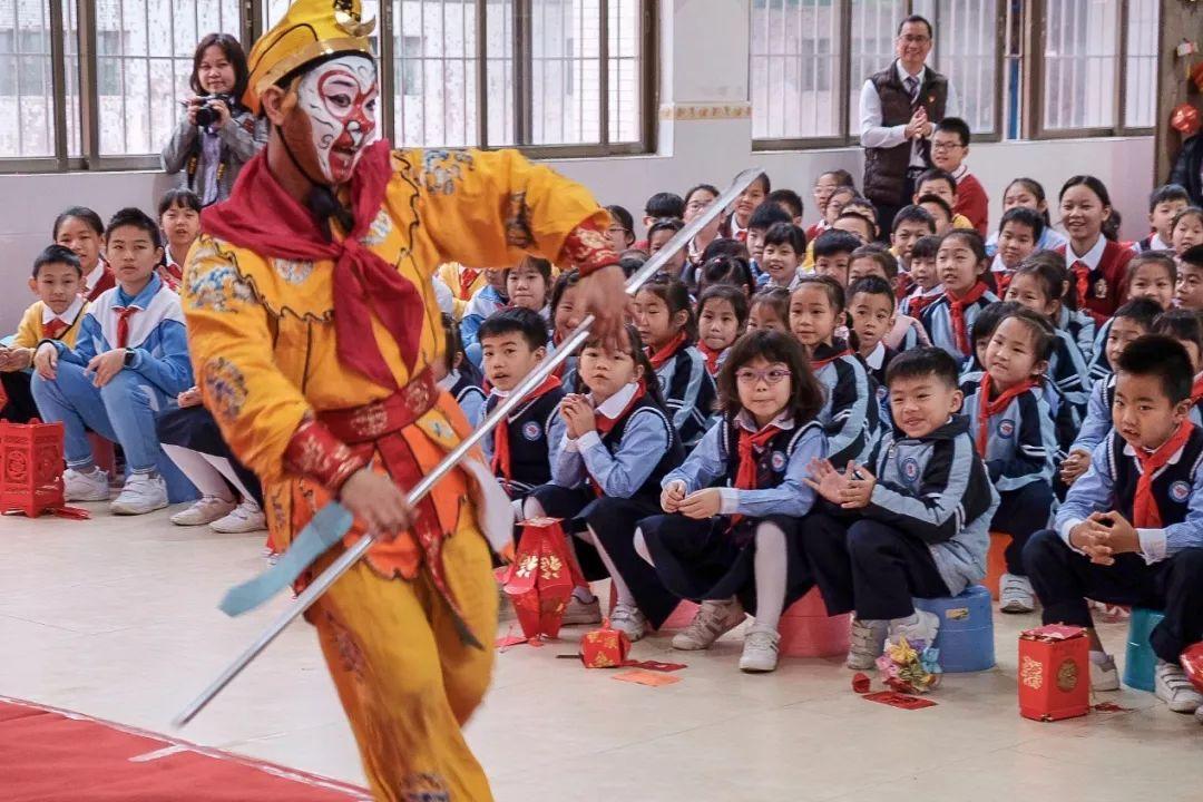 在2019年的春晚上,粤剧作为2019年央视春晚中的岭南文化符号,时隔34年后再次登上央视春晚舞台。来自广东粤剧院的粤剧艺术家带来的新编粤曲《粤韵新篇》,具有浓浓的岭南气息。在元宵佳节来临之际,东沙小学特邀《粤韵新篇》三位演唱者之一——文汝清及广东粤剧院的一众粤剧大师走进校园,让学生在感受粤剧美、奇、巧、趣的同时,领略中华优秀传统文化的悠久魅力和时代风采。
