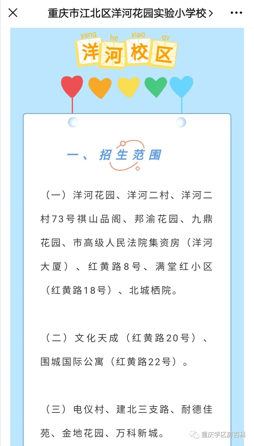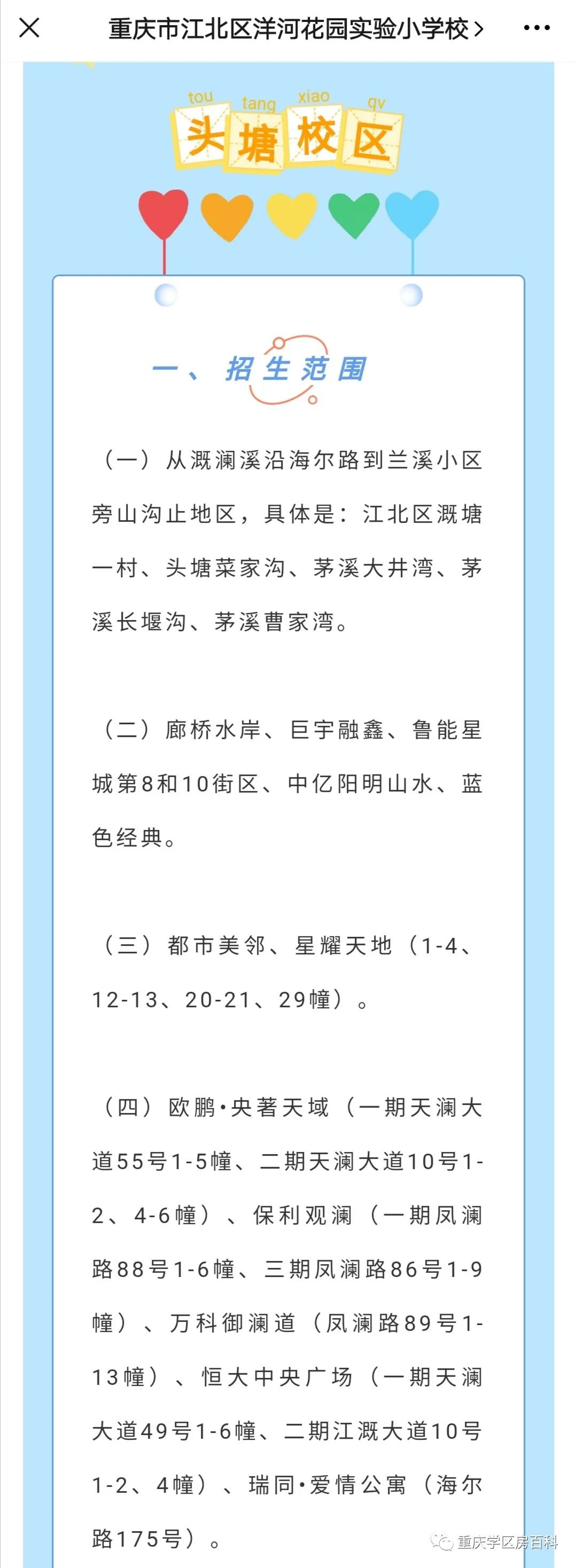 洋河花园实验小学(头塘校区)2020年划片范围,信息来源重庆市江北区洋河花园实验小学