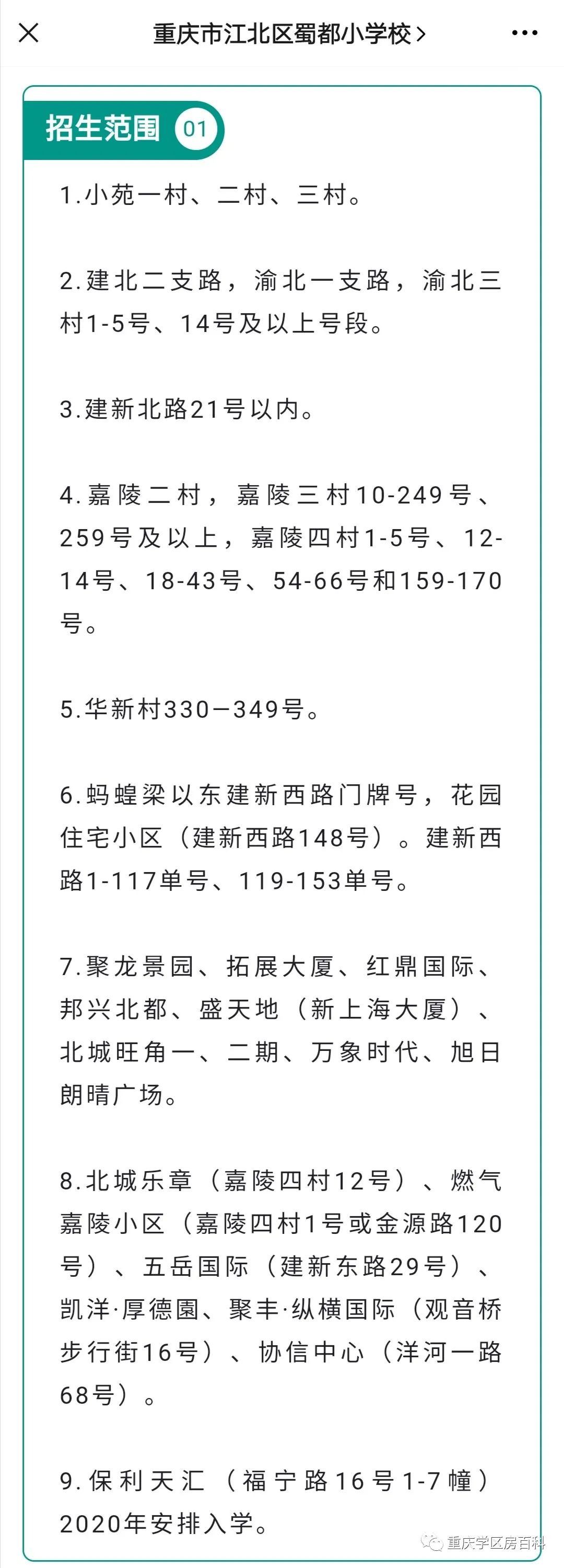 蜀都小学2020年划片范围,信息来源重庆市江北区蜀都小学校