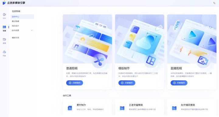 腾讯旗下的一个在线剪辑工具,支持普通视频剪辑、视频模板制作、以及直播剪辑,还支持自定义素材、提取游戏/球赛精彩片段、智能拆分新闻...