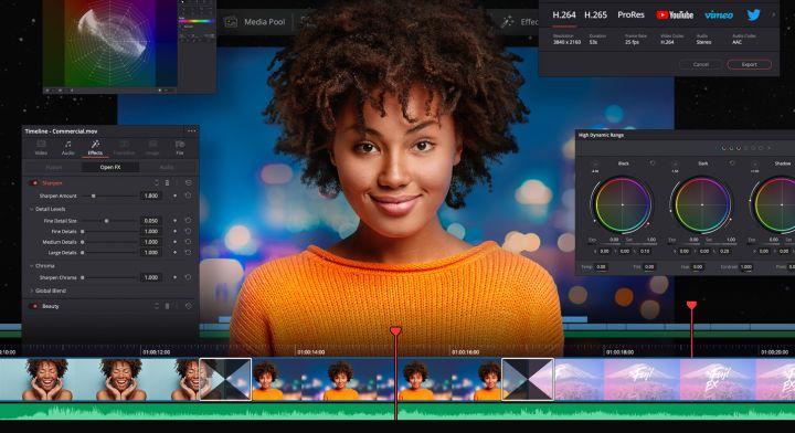 可在Windows、Mac、Linux上使用;有免费版本,而且付费版本相比于PR也便宜很多;调色算法强,调色功能比较细致;能在编辑,颜色,效果和音频之间即时切换缺点: