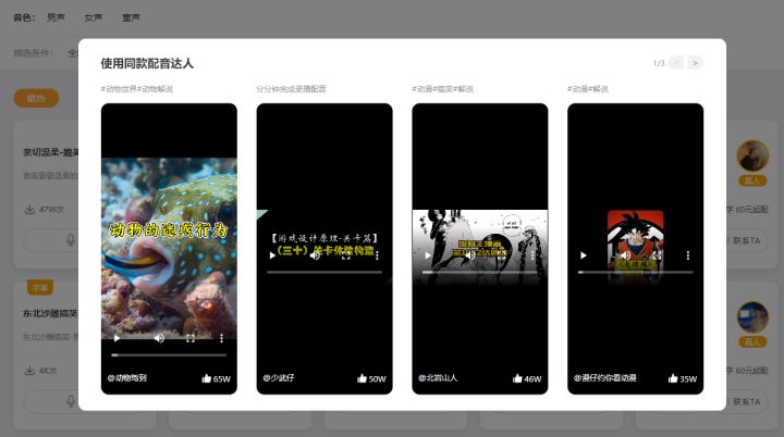 部分AI声音,还可以查看大V使用案例,比如这个抖音一哥的声音,就有10位抖音博主推荐使用过: