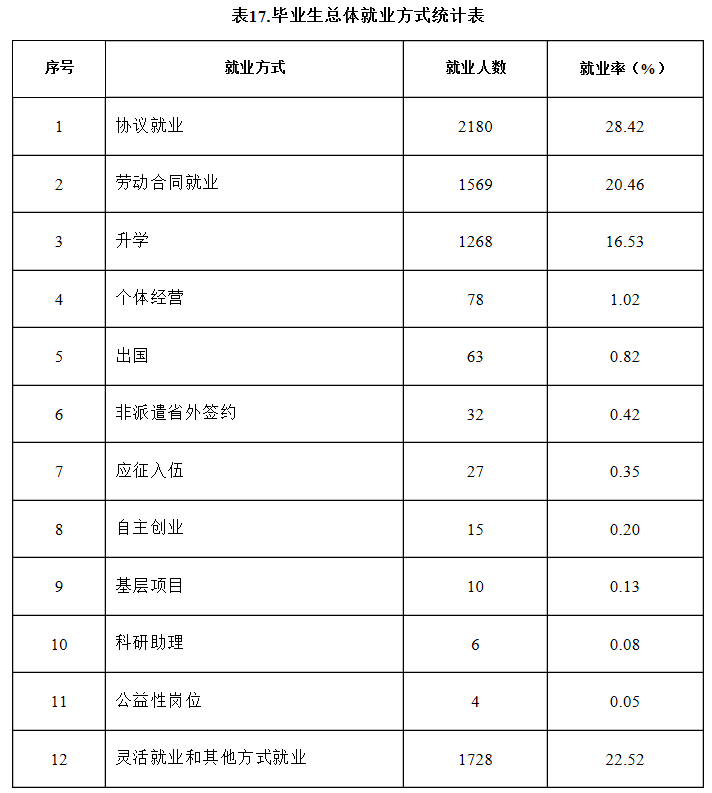 2018年共计毕业生7670人,其中本科生6044人,总体就业率为91.00%。