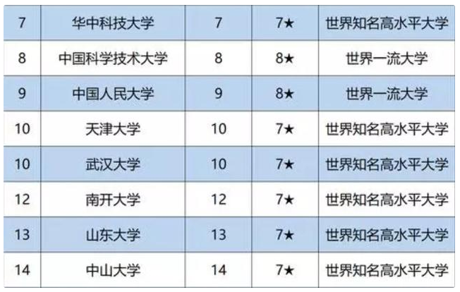 内地高校前十位中,除了“清北华五人”之外,也有很多新面孔。华中科技大学表现不俗,超越中国科学技术大学和中国人民大学位列第七,天津大学和武汉大学并列第十;另外南开大学、山东大学、中山大学和西安交通大学等也均进入了前十五位。非“985工程”高校中,华中农业大学、河海大学、南京农业大学、华中师范大学和郑州大学等表现亮眼,均进入内地高校前四十位。