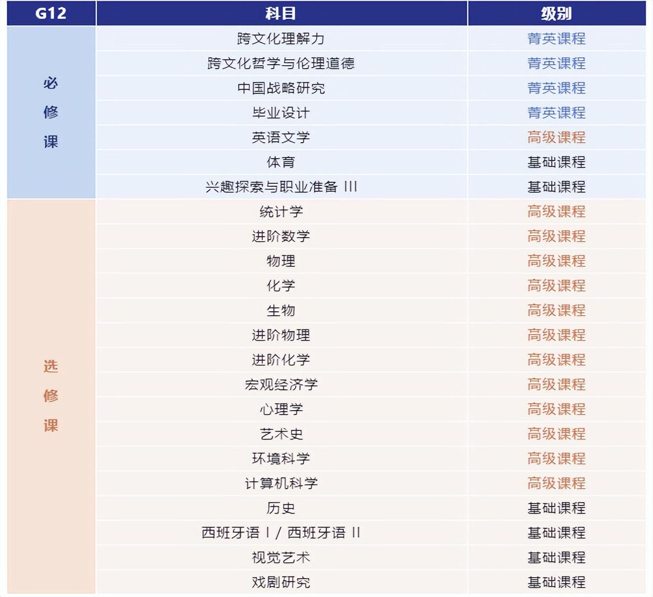 WLSA提供两类国际高中课程体系(10-12年级):美高课程体系、A Level课程体系。(我们这里只对比美高)