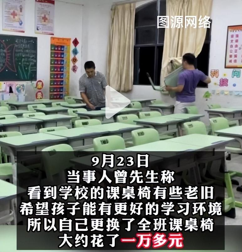 以前还有一些记者找到了当事人,当事人也表示是因为看到学校桌椅有些老旧了,希望孩子能够有更好的学习环境,前后花了也没多少钱,也就是1万来块钱而已。