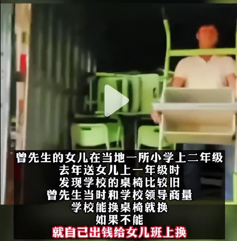 但无论如何当孩子的父亲,明确表示希望能够更换桌椅板凳,学校方面肯定是欢迎的。