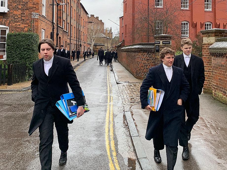 课间10分钟,伊顿公学的学生从一个课堂匆匆赶往另一个课堂