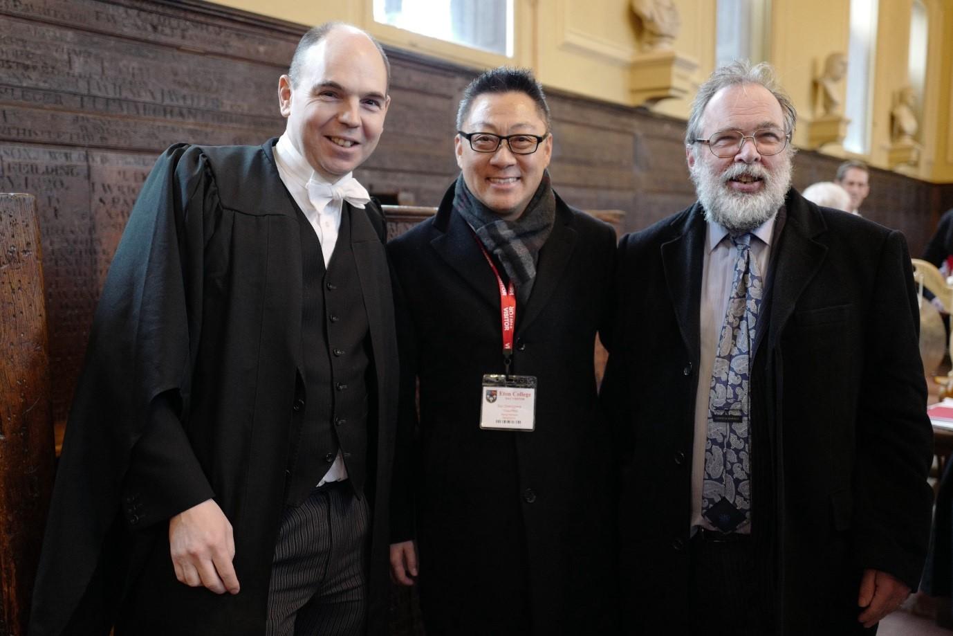伊顿校长西蒙·亨德森(左)和伊顿在线CEO佩西·哈里森博士(右)与作者合影