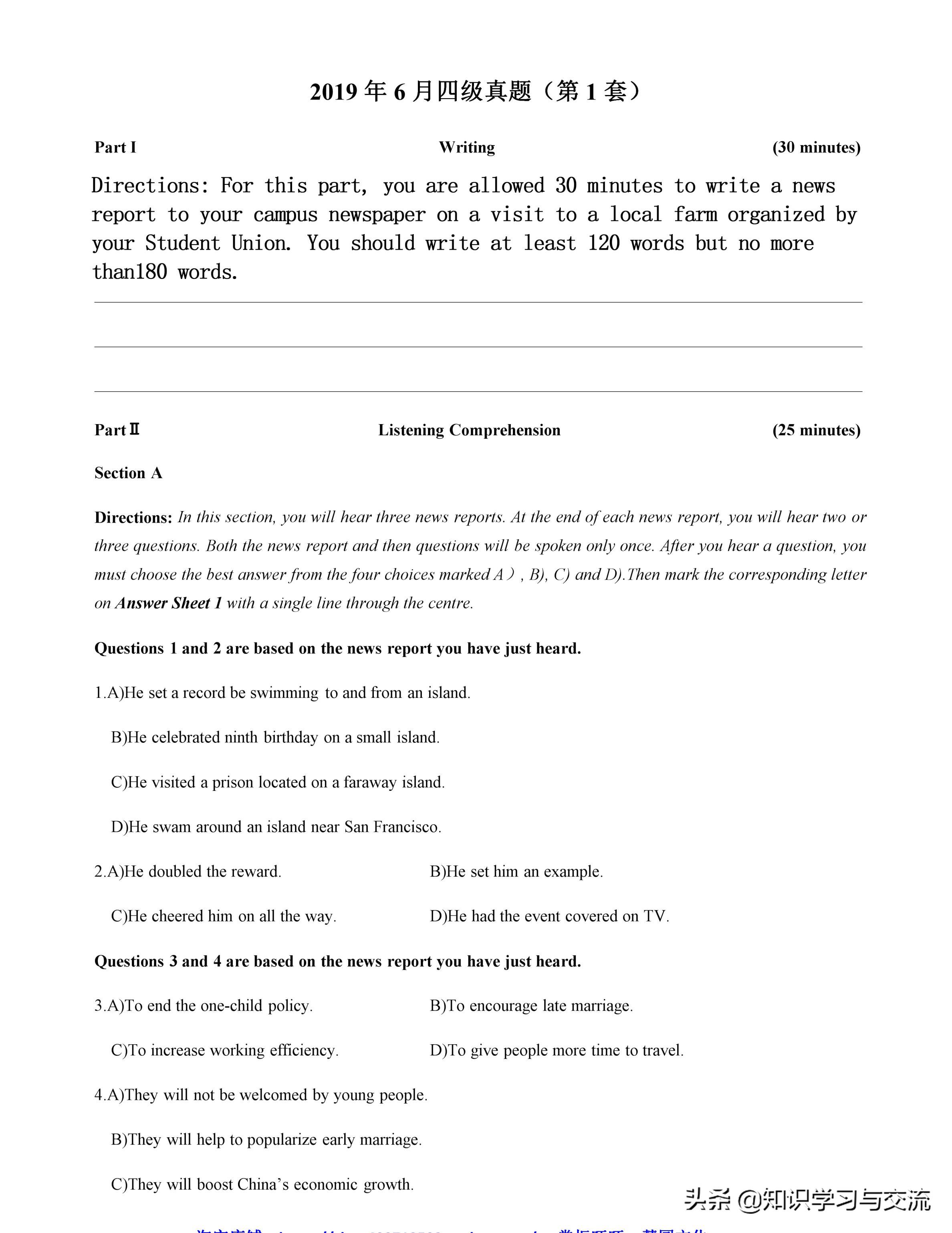 版权声明:我们致力于保护作者版权,注重分享,被刊用文章【英语四级考试真题(2019)】因无法核实真实出处,未能及时与作者取得联系,或有版权异议的,请联系管理员,我们会立即处理! 部分文章是来自自研大数据AI进行生成,内容摘自(百度百科,百度知道,头条百科,中国民法典,刑法,牛津词典,新华词典,汉语词典,国家院校,科普平台)等数据,内容仅供学习参考,不准确地方联系删除处理!;