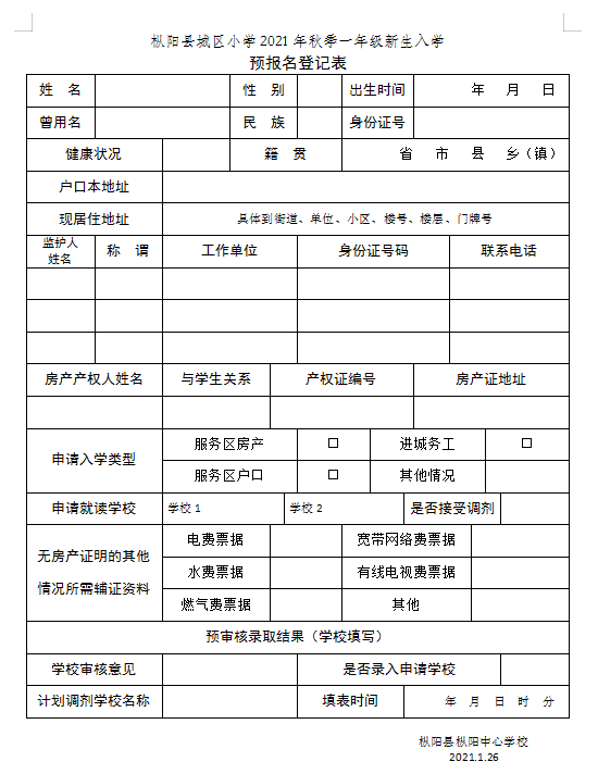 已入学的一年级学生,今年不得二次报名,请家长报名时慎重考虑,认真填报。