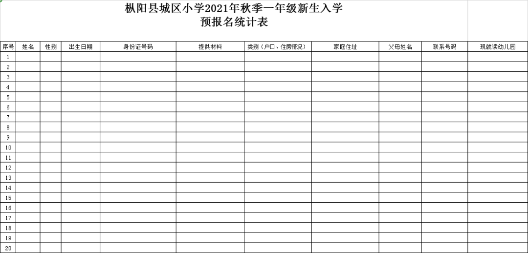 一、预报名采用网络填报为主、纸质填报为辅的形式,所填表格必须完备真实,以便准确掌握适龄儿童情况。(预报名登记表和统计表请在网站自行下载,网址 http://www.zyzxx.org/,电子表请以附件方式发送到邮箱 1251840993@qq.com。截止时间为 2021 年 2 月 28日。)