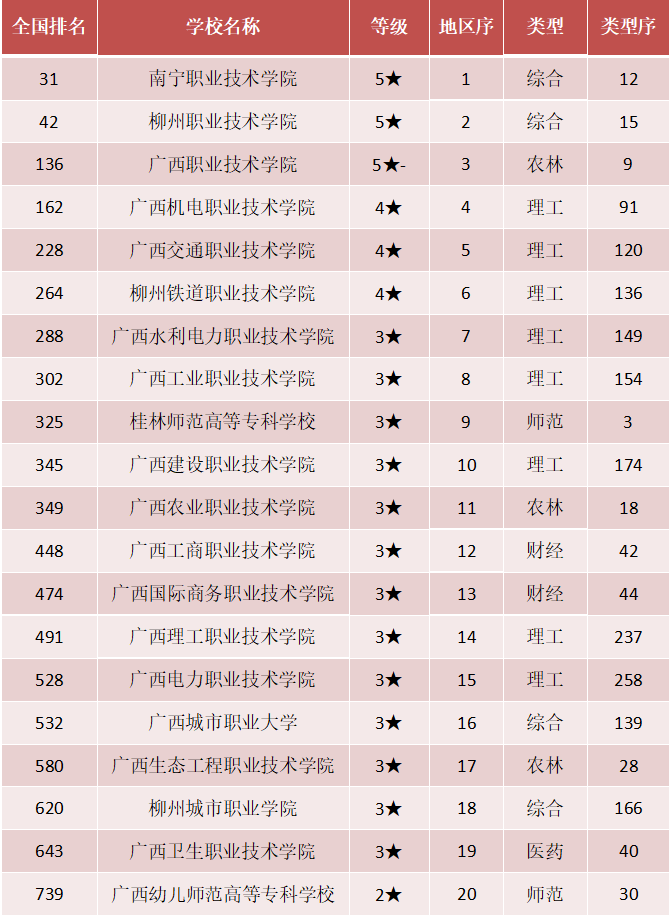 一起来看看广西高职高专院校在全国的排名情况吧~