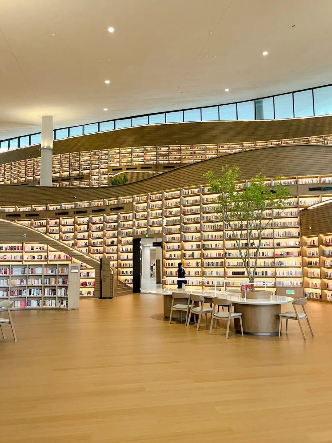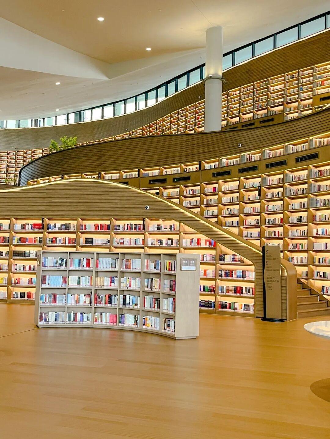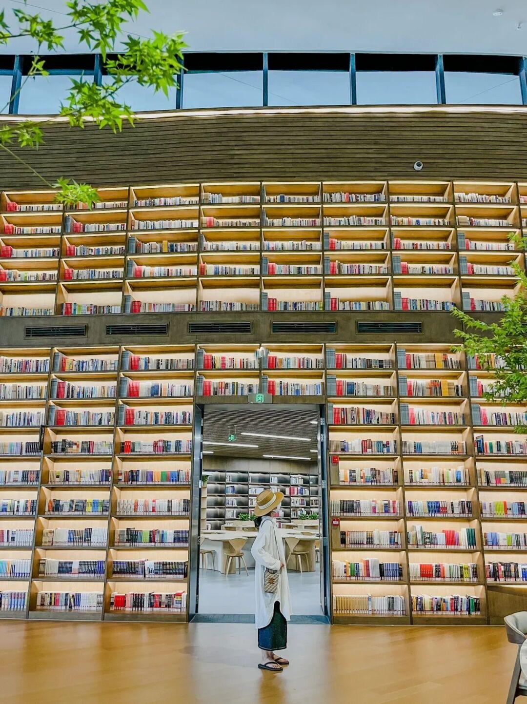 进门即见恢弘的【书山】,据说这里的灵感来自四川盆地的丘陵,有最高8米的书墙,里面全是可供游览的真实的书;