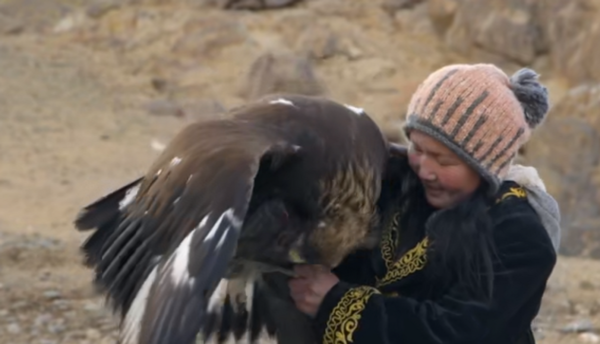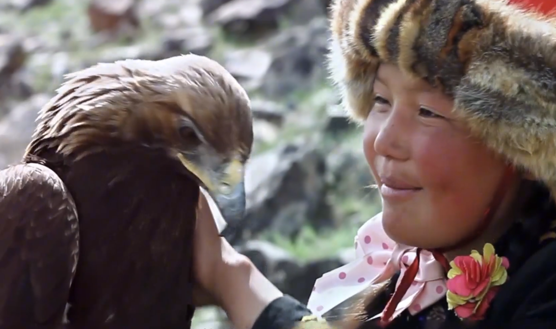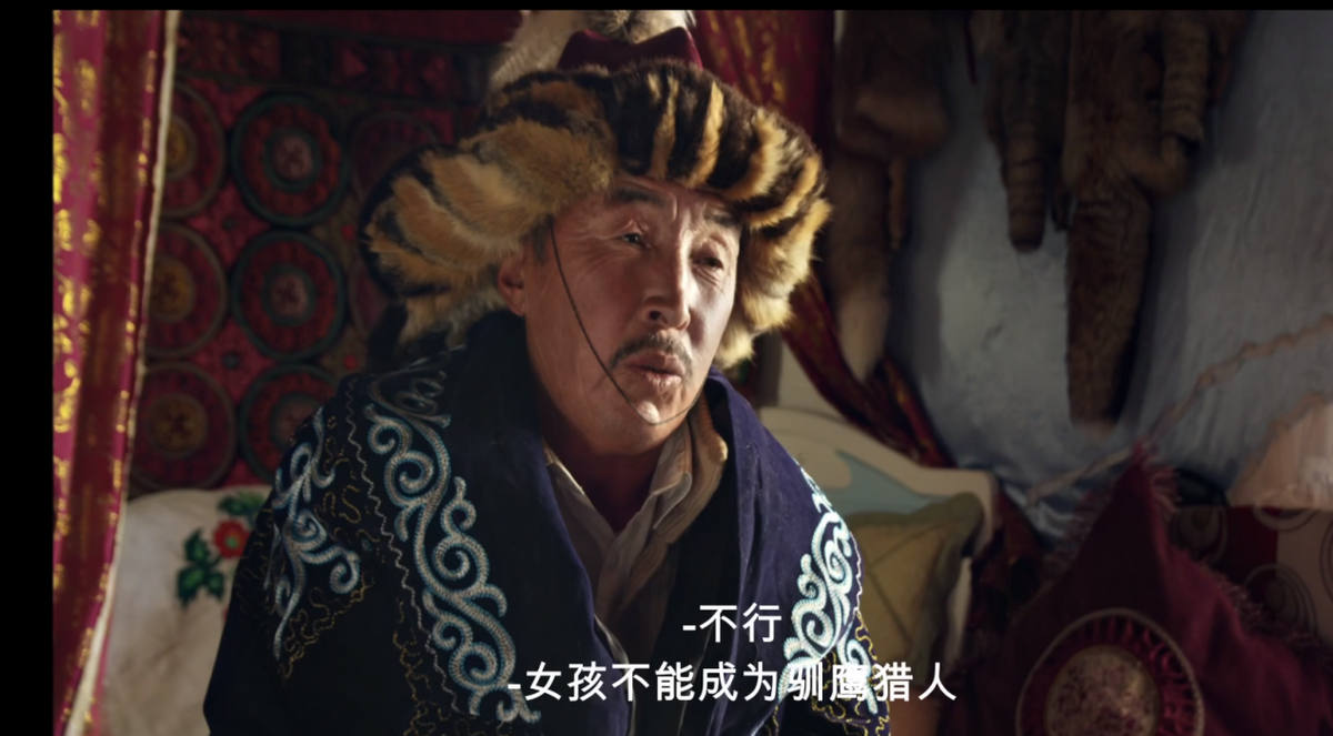 当他和父亲一起告别家人踏上去往参赛地点时,父女俩坚毅的背影仿佛在向族人宣战:女孩子一样可以成为很好的猎鹰人!