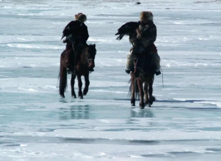 冬天,猎鹰人经常骑着马,带着自己的老鹰走在冰天雪地之中,到处寻找猎物。