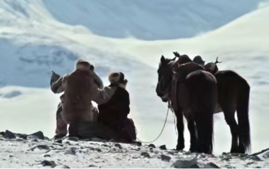 和父亲一起骑马走了150多公里的路,终于到达了狩猎的地点。这里原本是大草原,可现在早已经被冰雪完全覆盖了。