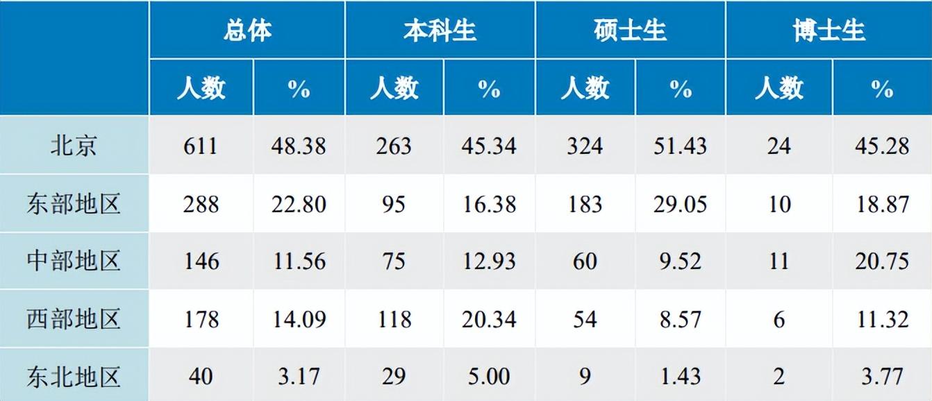 北语2021届本科毕业生主要在北京就业,人数占比45.34%,其次,还有一大部分学生流向西部地区和东部地区,其主要就业城市为北京市,上海市、天津市和深圳市。