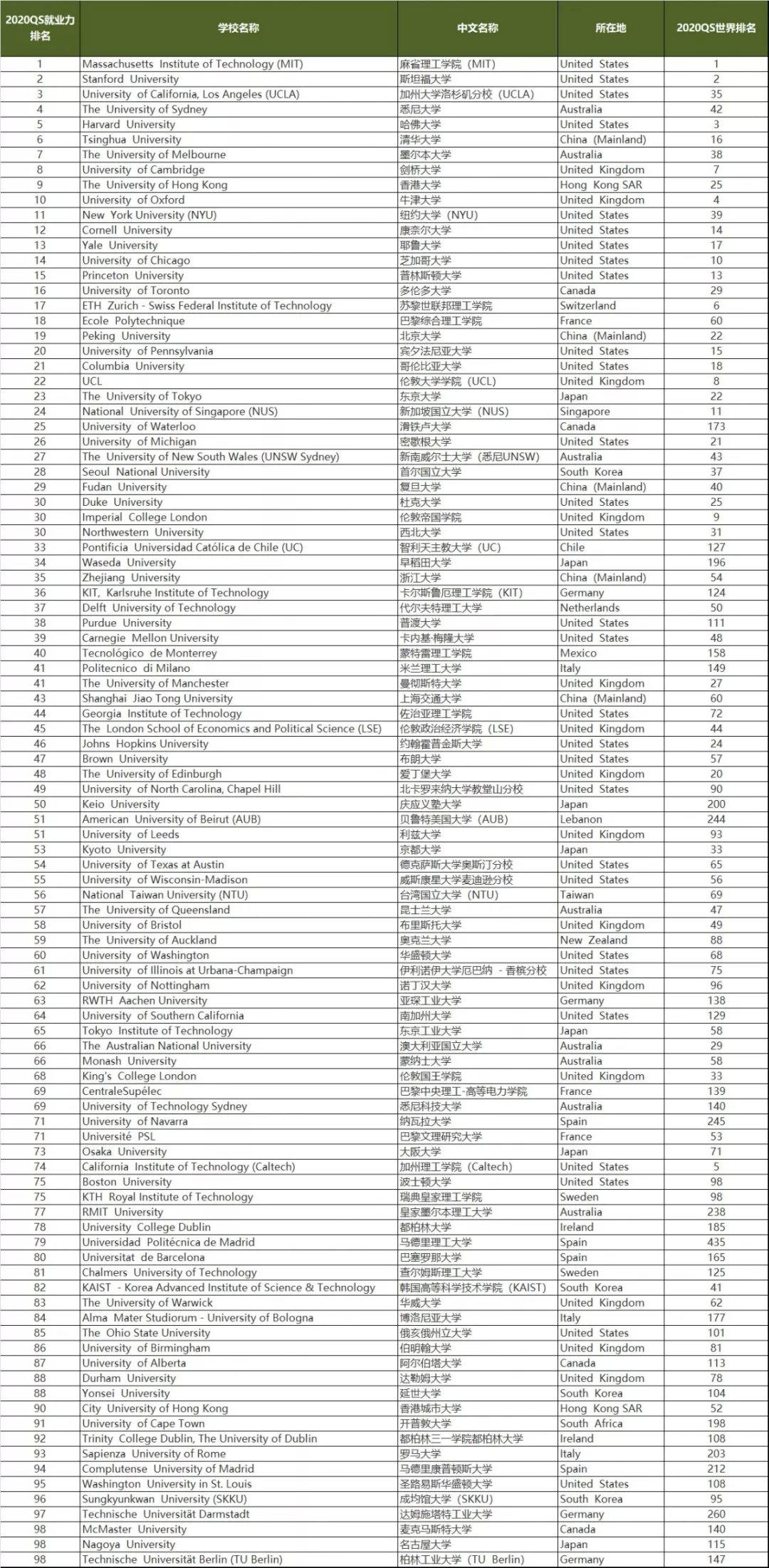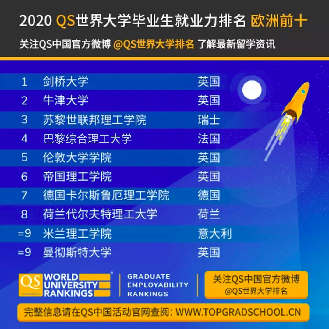 根据全球高等教育研究智库QS Quacquarelli Symonds 发布的《2020 QS世界大学毕业生就业力排名》,全球就业最好的TOP 10学校如下:
