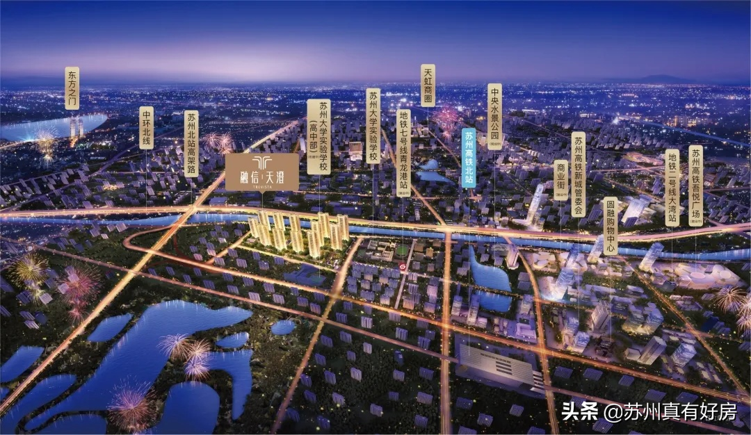 国家级综合交通枢纽苏州高铁北站;未来将五轨交汇:轨交2号线在运行,在建的有7号线,未来还有10、12、13号线经过;快速路:南天成路西延线工程和高铁新城快速路连接线工程。