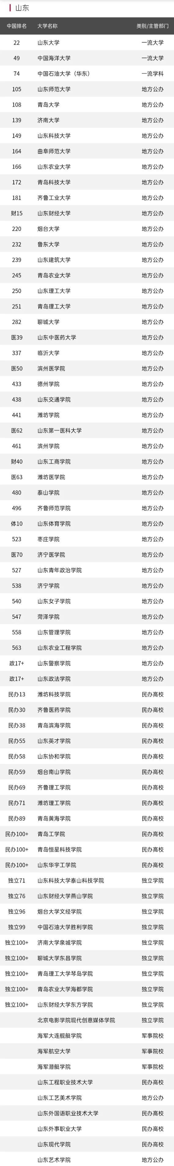 以下是2020软科山东省高校排名: