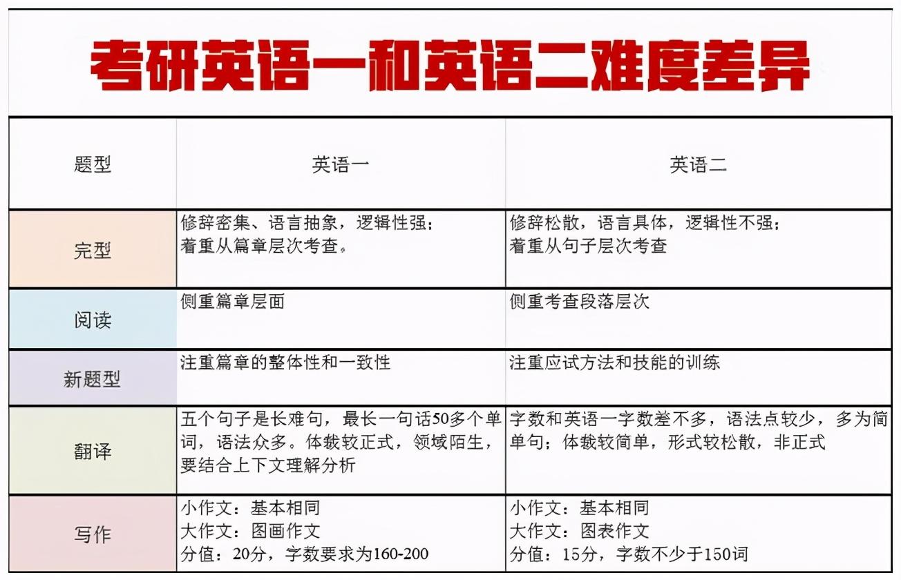 考研英语一和英语二其实虽然说英语一要难一些,但题型和答题技巧等也都差不多,就是复习上还是会有所不同,大家要做好心理准备。