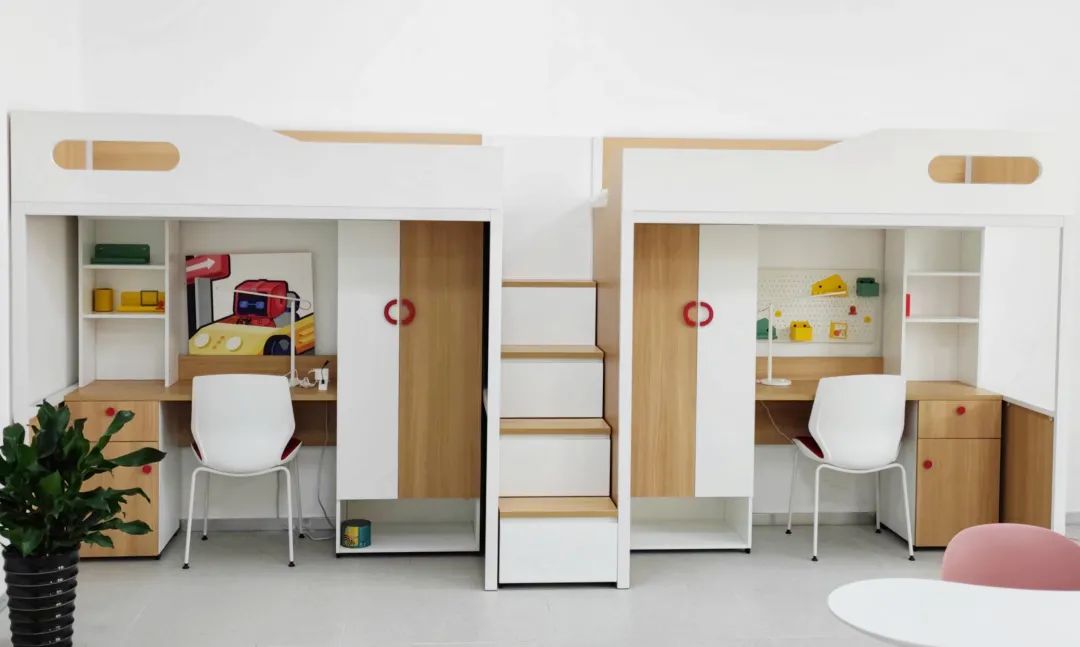 学校每个宿舍都配备完善的生活设施,如独立卫生间、空调、洗漱台、私人储物柜、花洒淋浴头、全天候热水供应系统等。