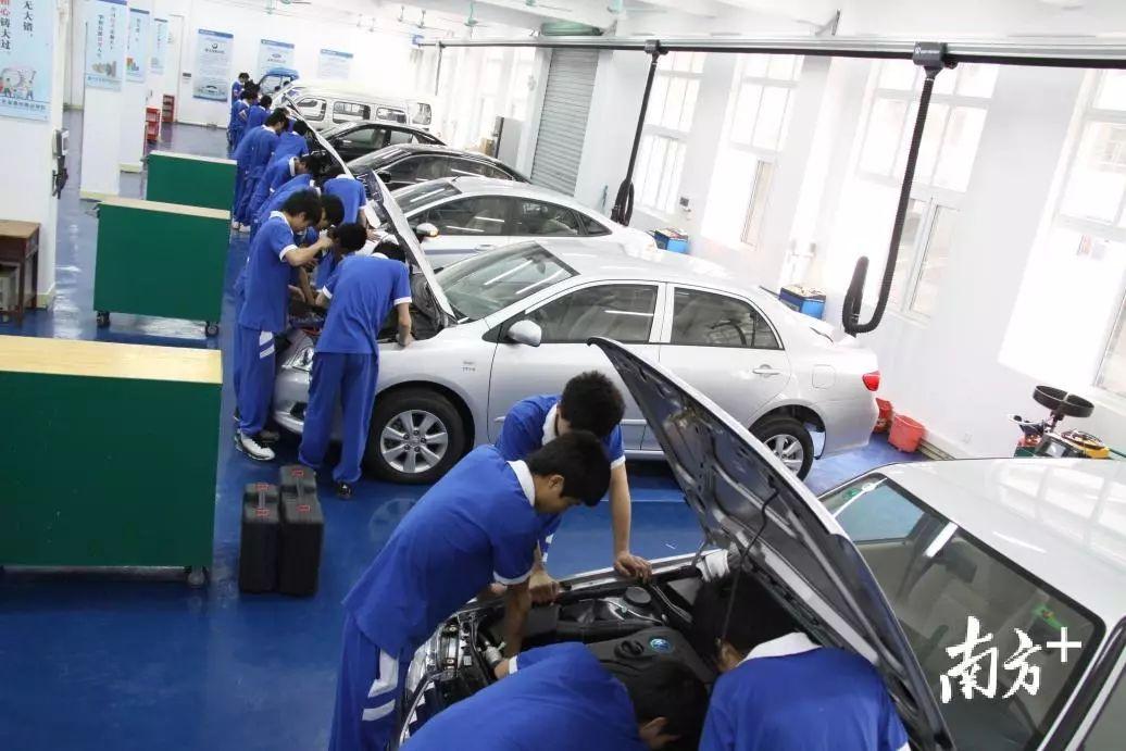 一群年轻人,身着整齐的工服,手拿专业的工具,正在检修一辆辆小轿车。如果不是早已知道这是广州市交通运输职业学校汽车运用与维修专业的课堂教学现场,还以为是哪家4s店的维修车间。该校的汽车运用与维修专业和国内外知名汽车品牌企业合作建立了六大企业订单班,超过40%的学生进入订单班接受企业的特色课程培训。