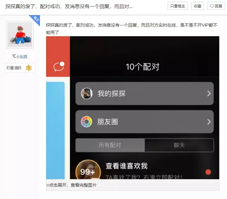 在百度探探吧中,就有不少用户表示,每天守着右滑了许多用户,也成功匹配了不少好友,而且明明看到对方都是在线的,也并不会有任何回复。