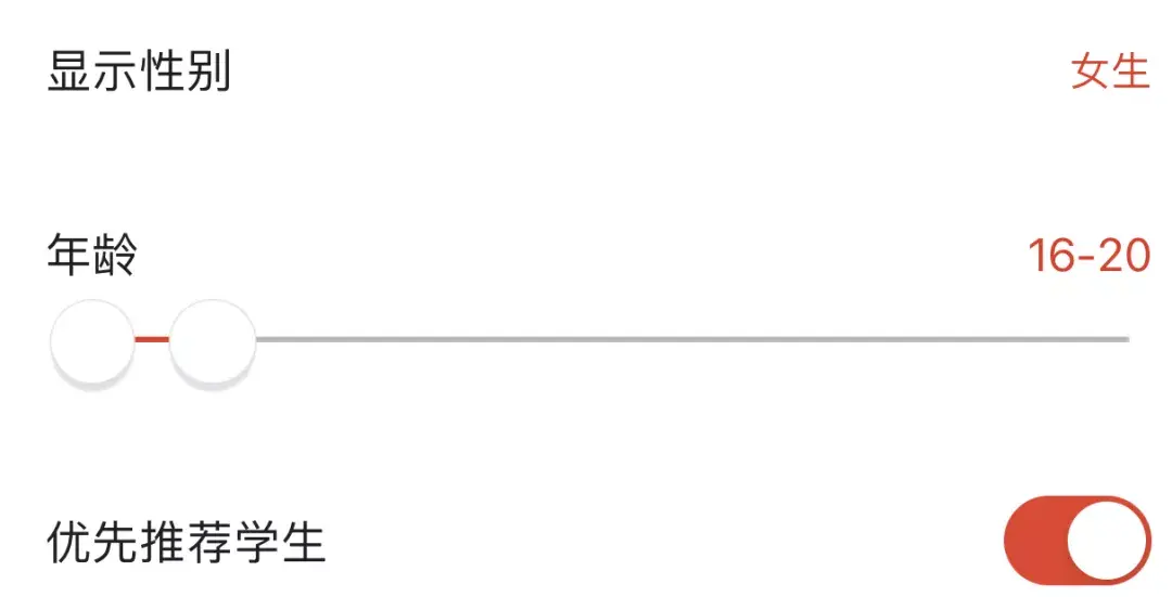 另外,还有一个“优先推荐学生”的选项,这就很可怕了。虽然使用该功能需要认证用户同样也是学生,但是难免有怪叔叔使用他人身份信息进行注册,再用自己老道的手段去诱骗在校学生。