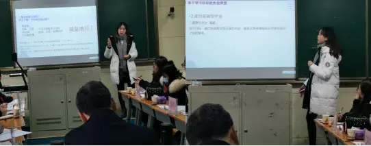 活动流程二:由黄龙溪学校温超老师带来《基于学习目标的作业设计》专题讲座。温老师从基于学习目标的作业类型、作业布置和作业评价三方面进行了分享,结合我校各学科作业设计的案例,生动呈现了我校在双减背景下作业管理的研究进展和实践经验,给与会老师在作业设计方面提供了理念和方法,引起大家的思考和启示。