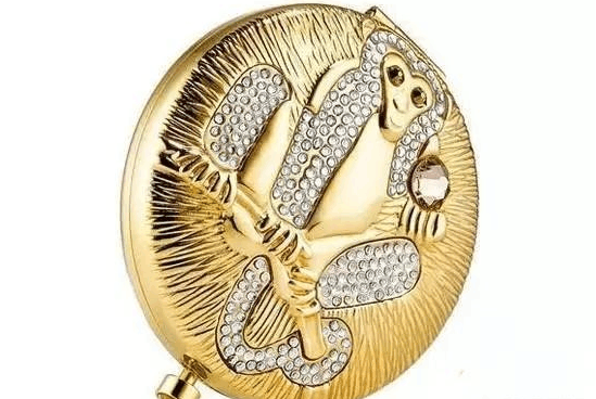 雅诗兰黛的猴年定制粉饼,这闪瞎眼的水钻和镀金,以及不明所以毛一样的暗纹,配着这只面带微笑的丑猴子…