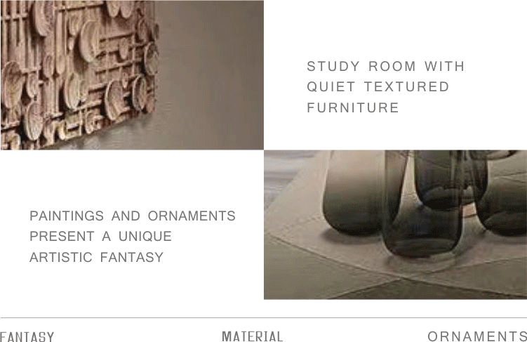 书籍典册的书房在艺术空间内自由结合,更广阔、更自由的氛围中。用暖色调的色彩与灯光搭配中和知识理性的一面,为走向智慧的过程覆上温暖的底色,名副其实“到处皆诗境,随时有物华。